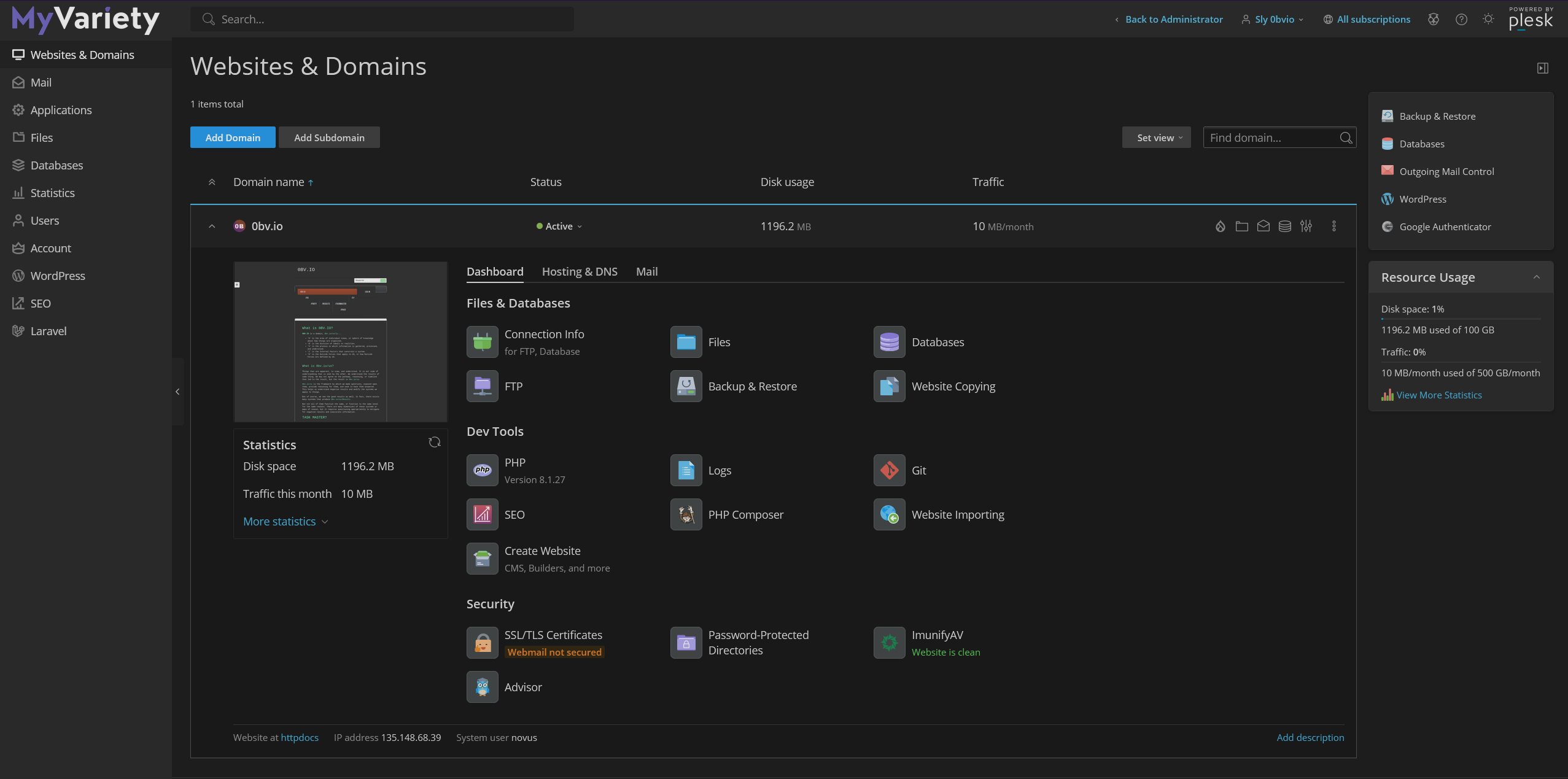 We have chosen Plesk to provide you with the tools you need to manage your web hosting service. Plesk provides a user-friendly interface, comprehensive features, scalability, robust security measures, and efficient automation. Plesk aligns with our commitment to delivering a seamless and secure hosting experience, empowering our clients with a versatile and reliable platform.